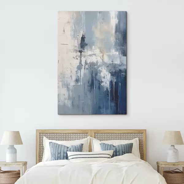 Glezna Abstrakta minimālisma eļļas glezna, berzēta, ģeometriska, traipu, zilā un baltā krāsā s38906