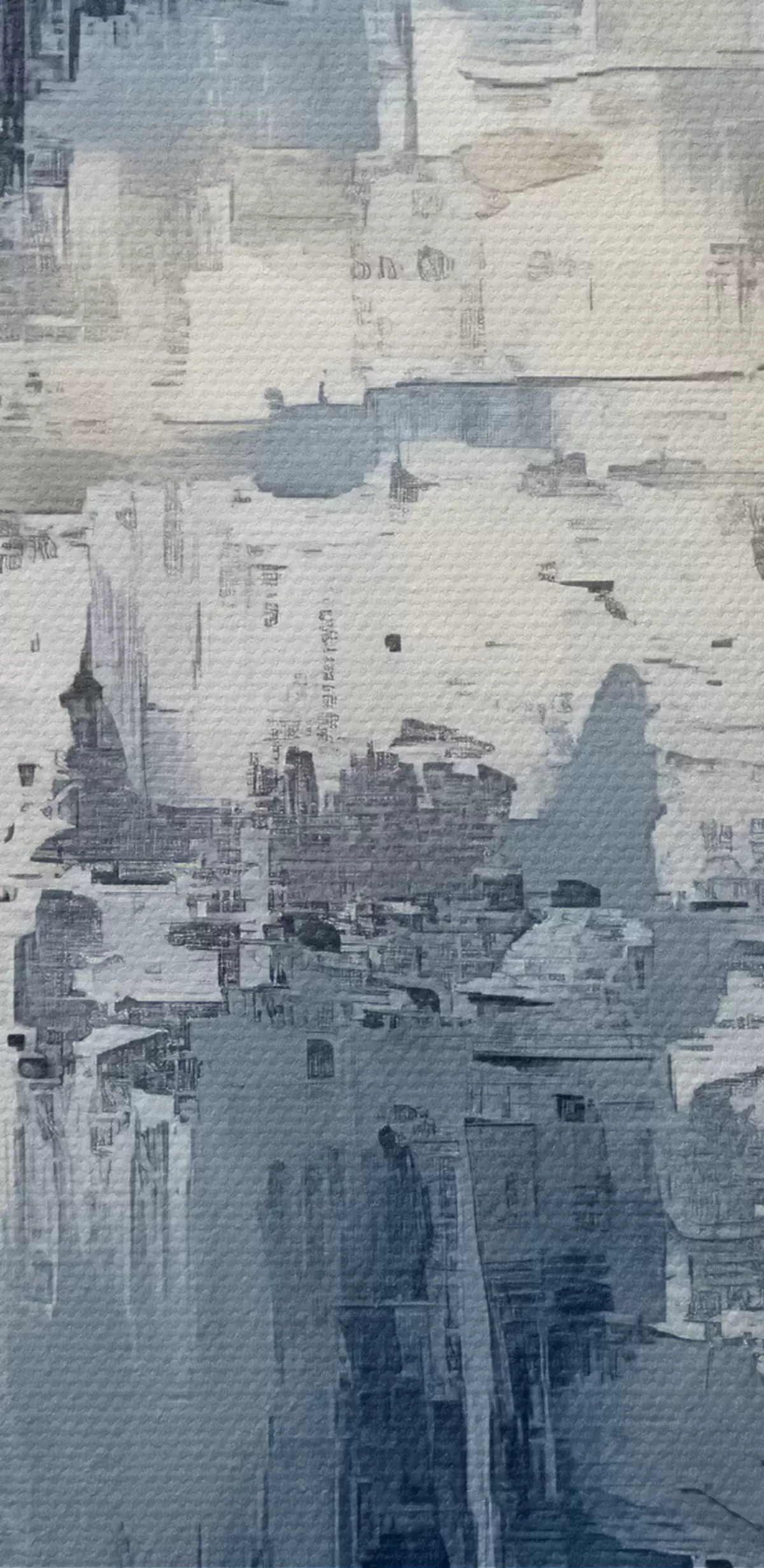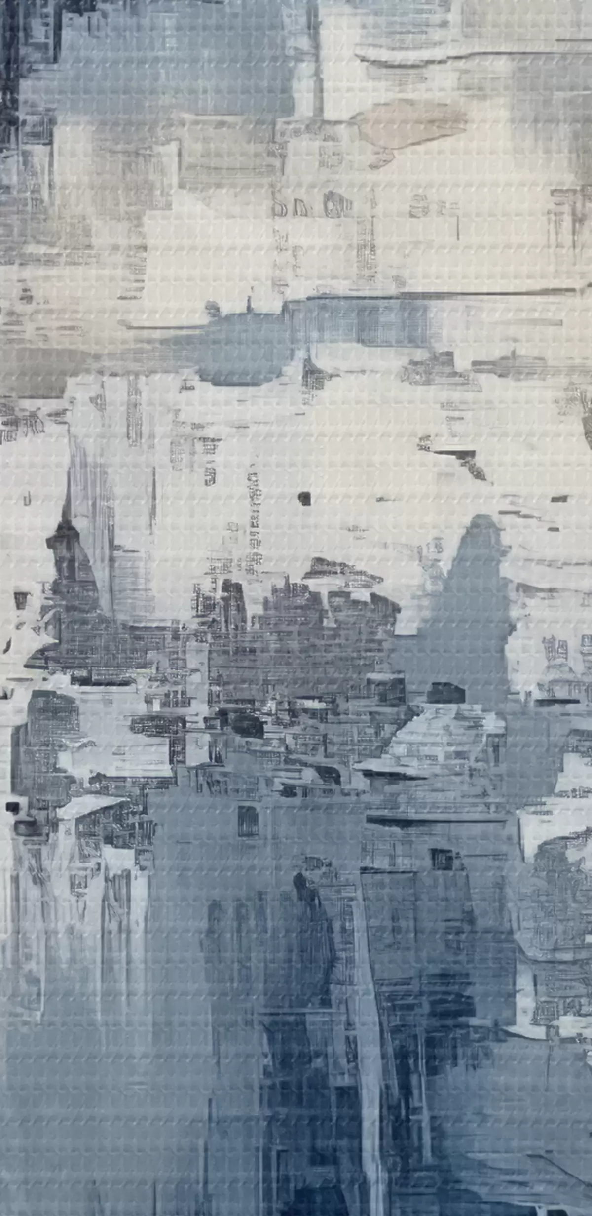 Glezna Abstrakta minimālisma eļļas glezna, berzēta, ģeometriska, traipu, zilā un baltā krāsā Nr s38906
