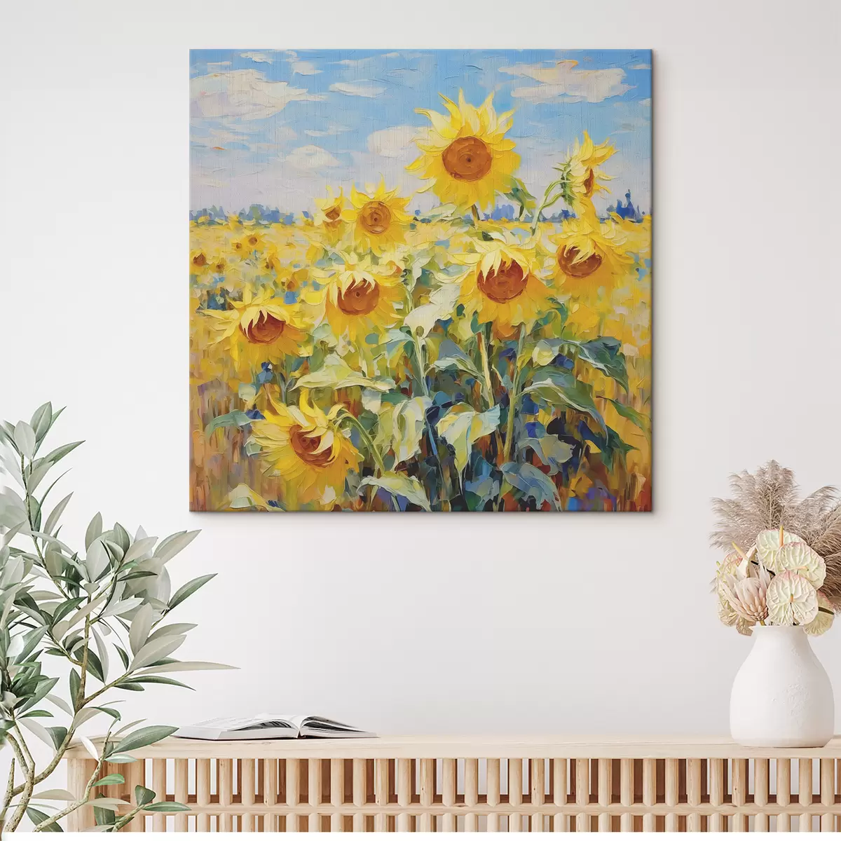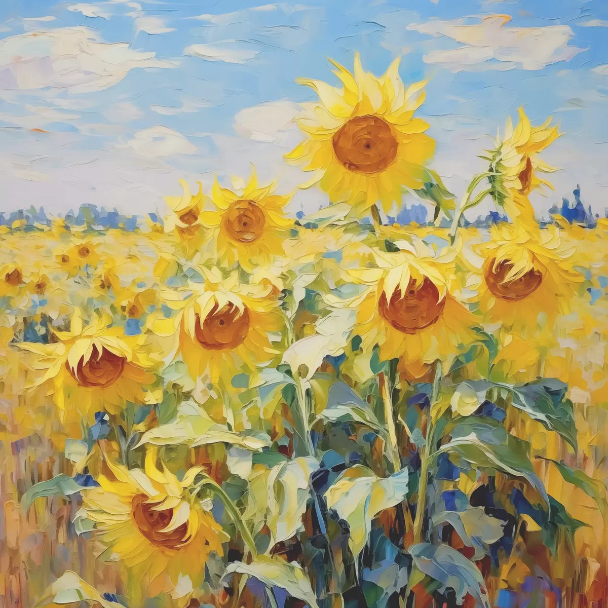 Glezna Saulespuķu eļļas gleznas lauks, dzeltenā un zilā krāsā s38953