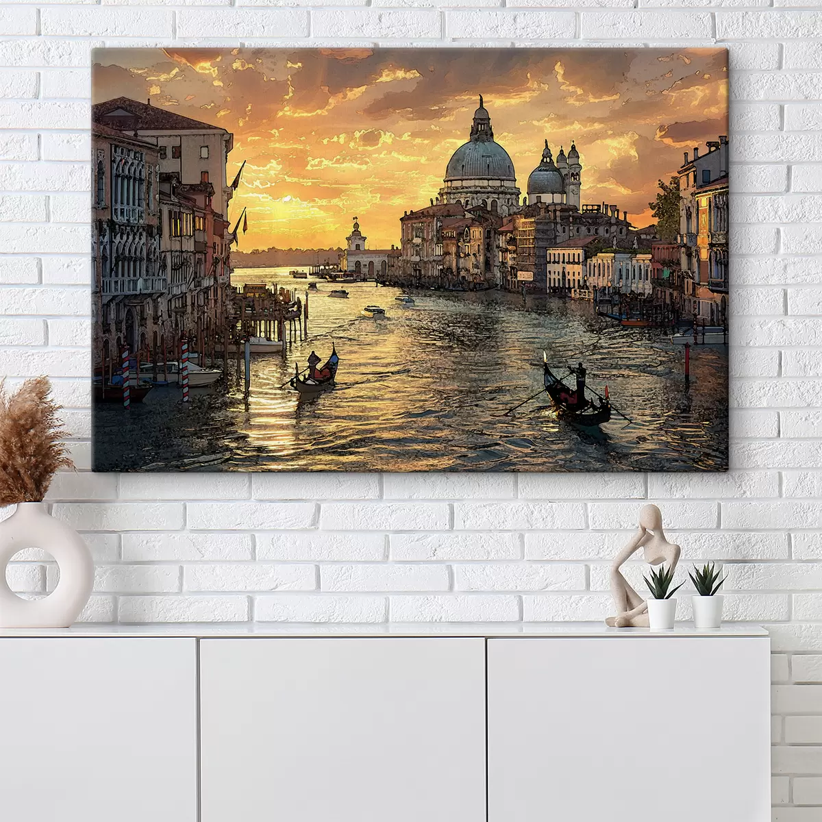 Glezna Gleznaina skata glezna uz Lielo kanālu Venēcijā, Itālijā saulrieta laikā. Nr s38963