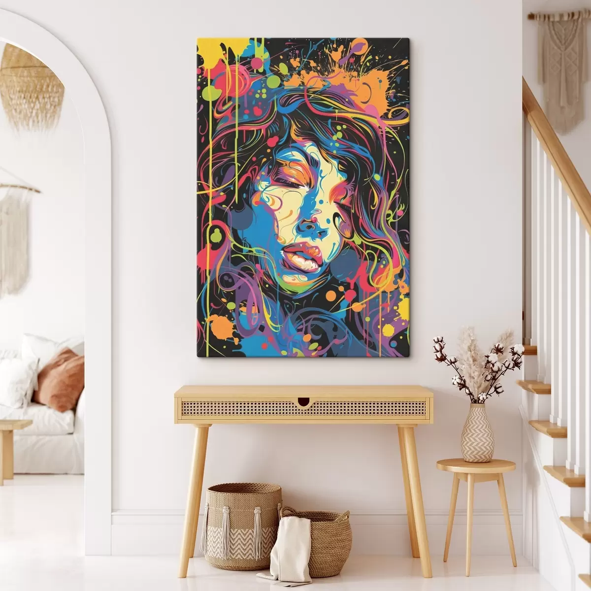 Glezna ir iekārtojama uzreiz pēc tās saņemšanas. Glezna tiks izstiepta uz 2 cm platām koka nestuvēm.