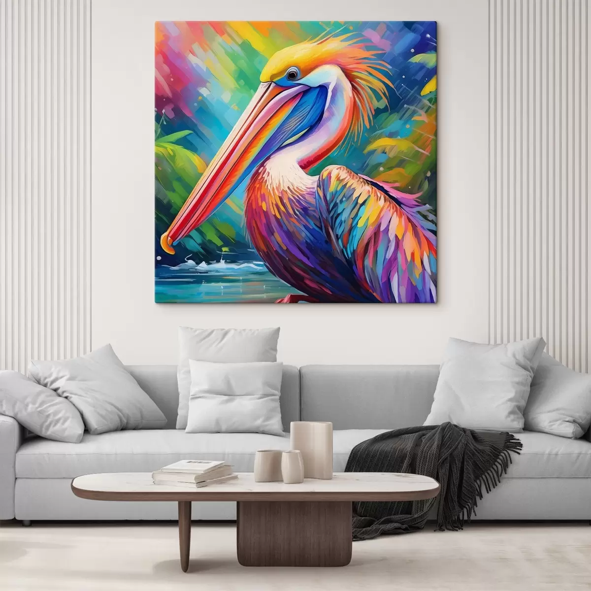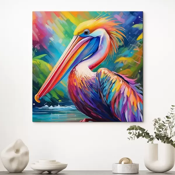 Glezna Spilgts pelikāns krāsainā fonā Nr s39054
