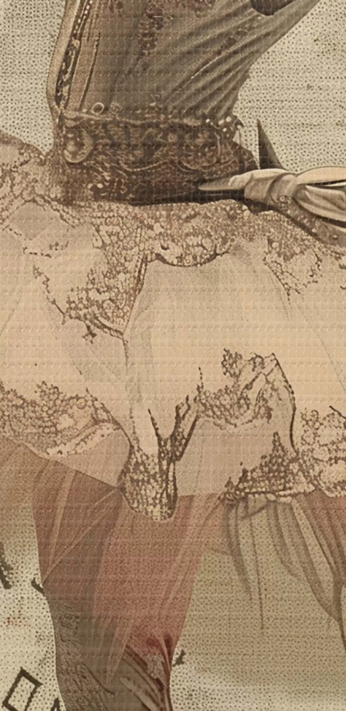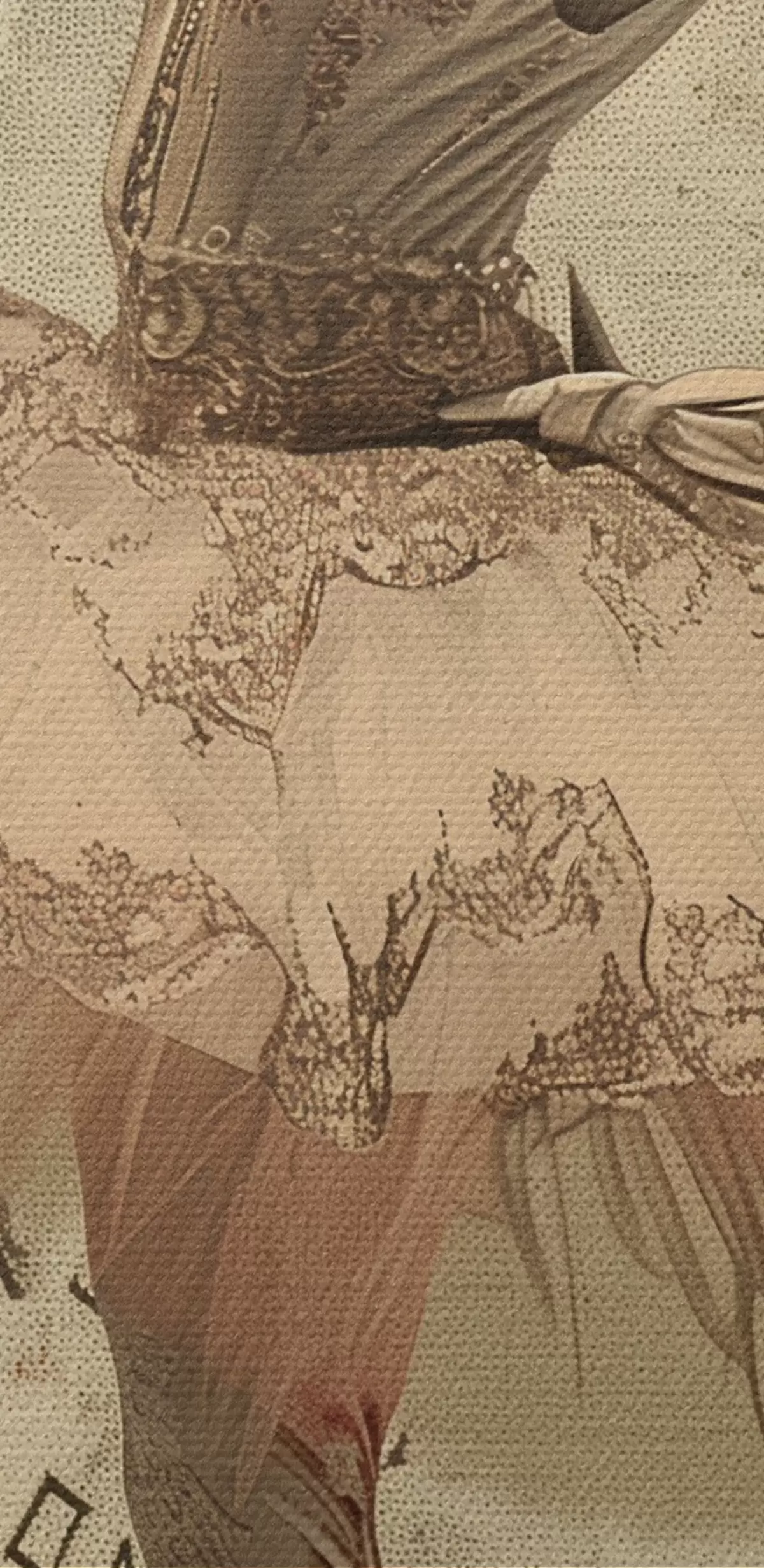 Smalkais diegu pinums uz šī audekla atgādina profesionālu mākslinieku audeklu virsmu.