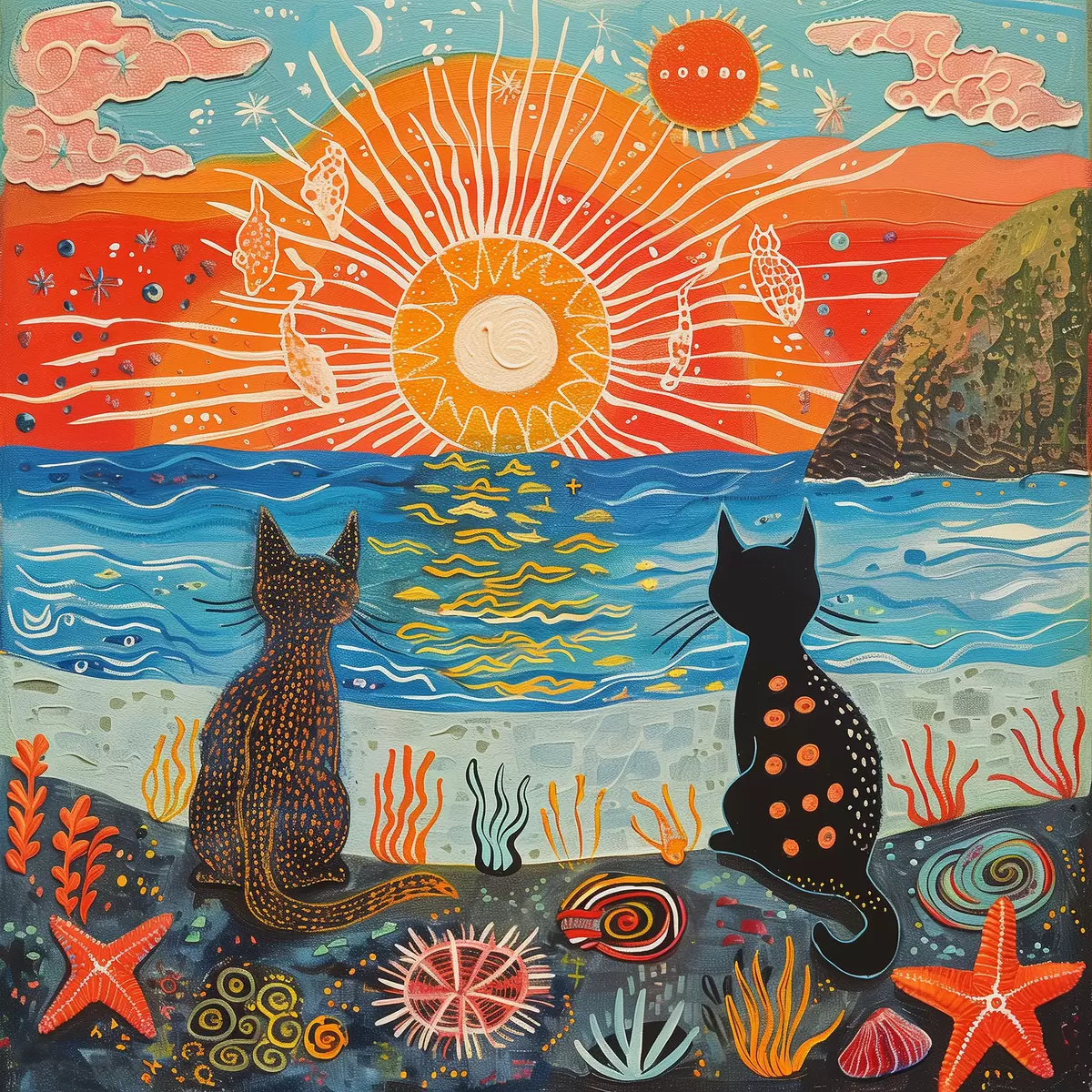 Glezna Divi jauki kaķi saulrietā Nr s39080