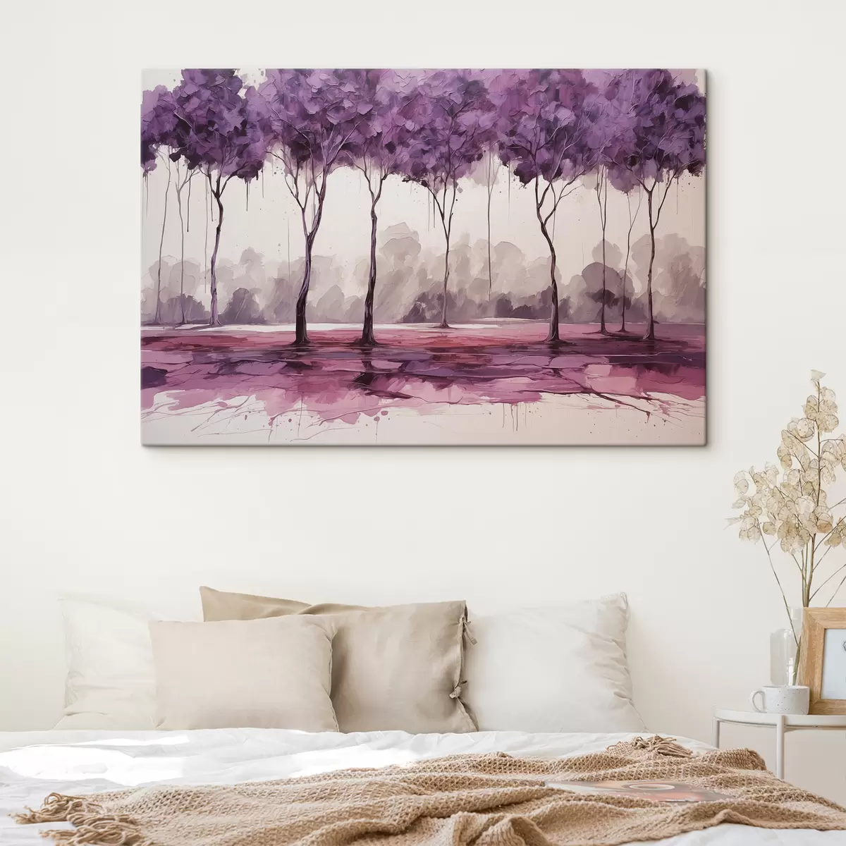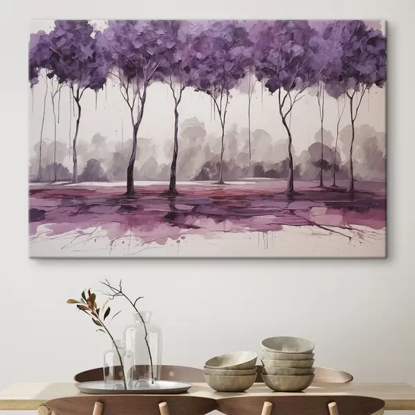 Glezna Koki ar purpursarkanām lapām uz abstrakta fona Nr s39155
