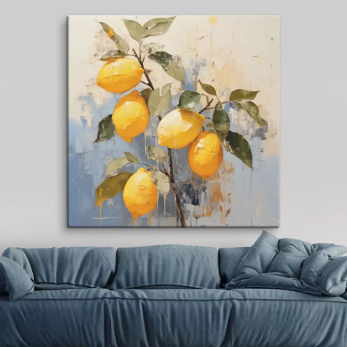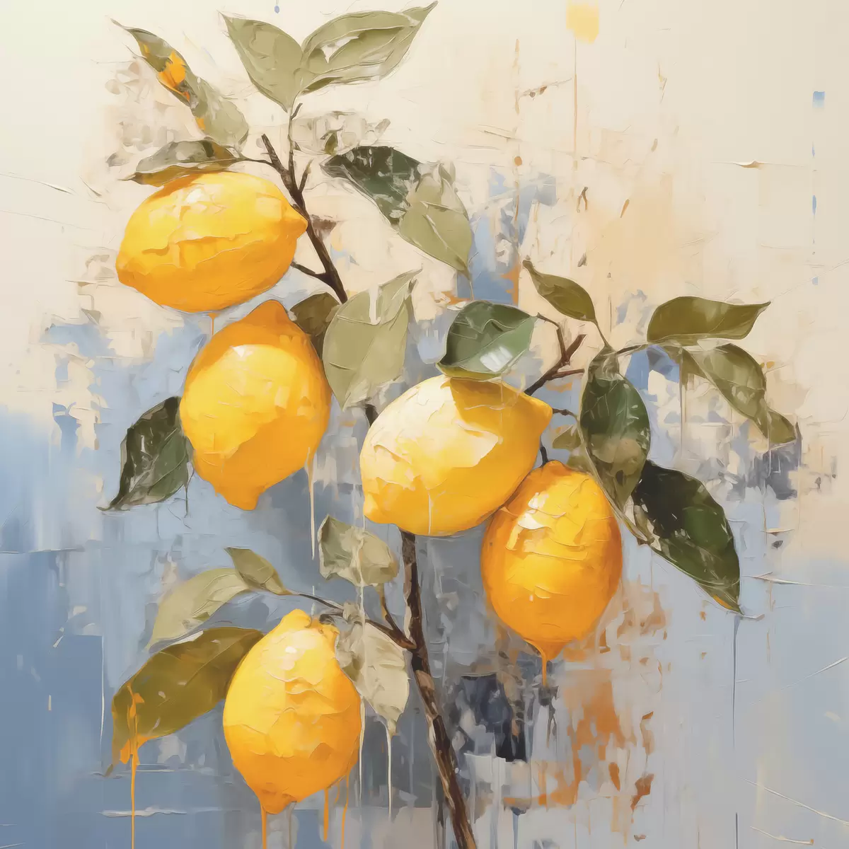 Glezna Zars ar nobriedušiem citroniem eļļas glezna abstraktā māksla, dzeltenā, zilā un zaļā krāsā s39186