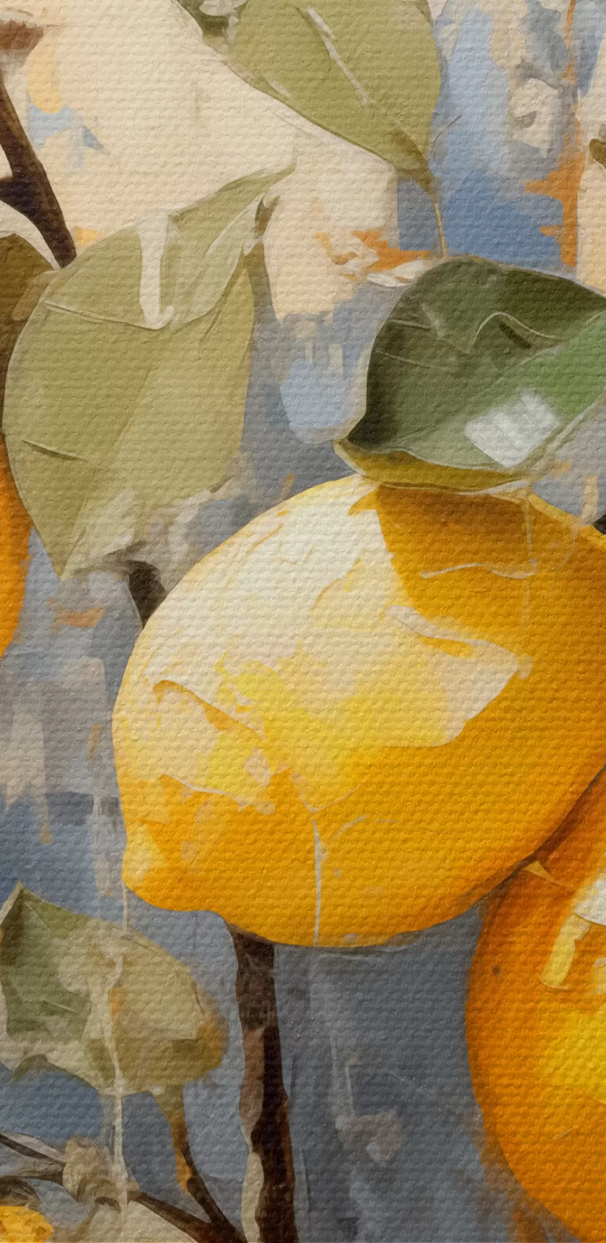 Glezna Zars ar nobriedušiem citroniem eļļas glezna abstraktā māksla, dzeltenā, zilā un zaļā krāsā Nr s39186