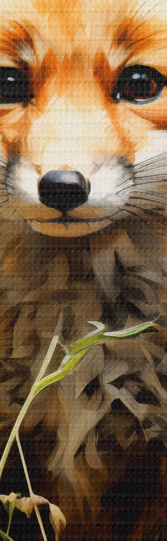 Glezna Sarkanā lapsa, kas sēž sausā zālē, uz zaļa fona, eļļas glezna s39191