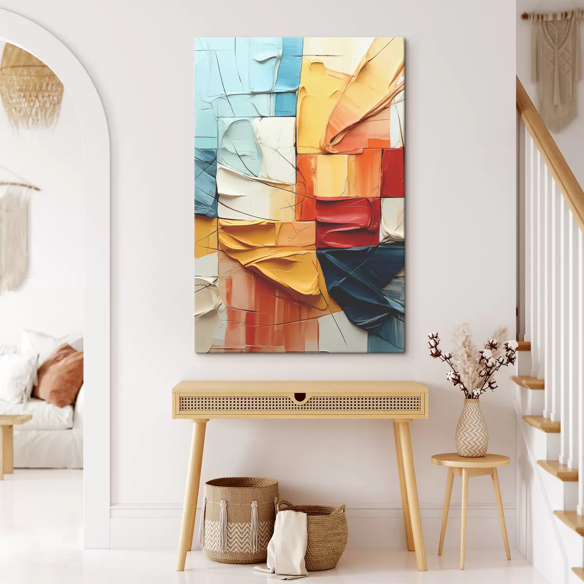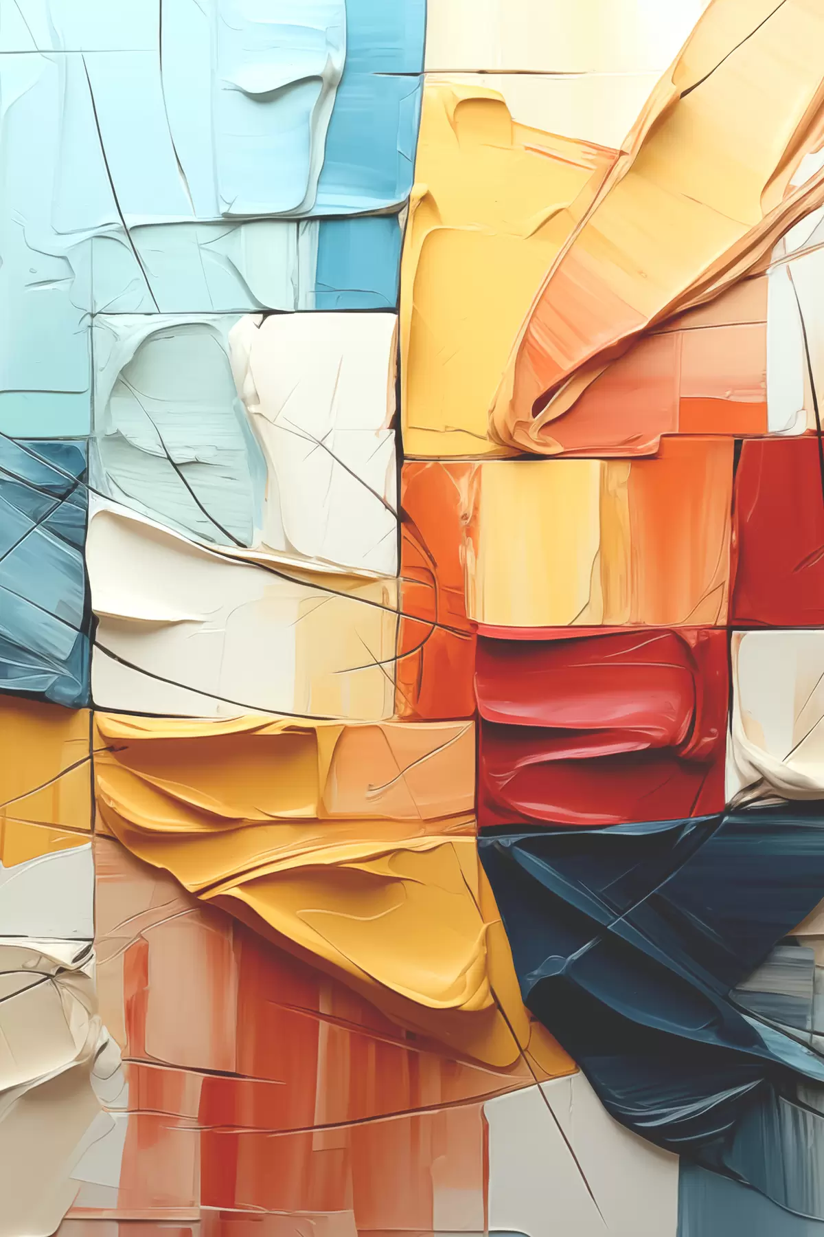 Glezna Spilgtas krāsas gabali ar plaisām, kvadrātiem, kubisma glezna Nr s39196