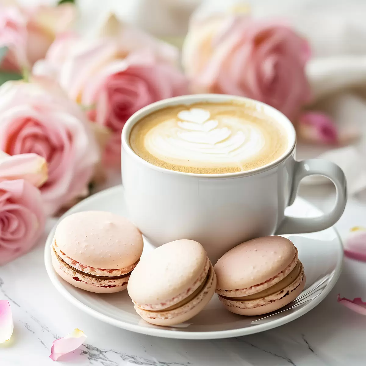 Glezna Kafijas tase uz smalka ziedu fona s39232