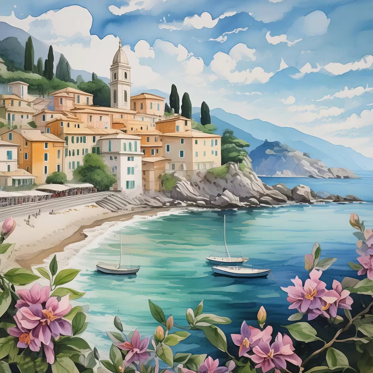 Glezna pilsēta pie jūras vasarā Nr s39299