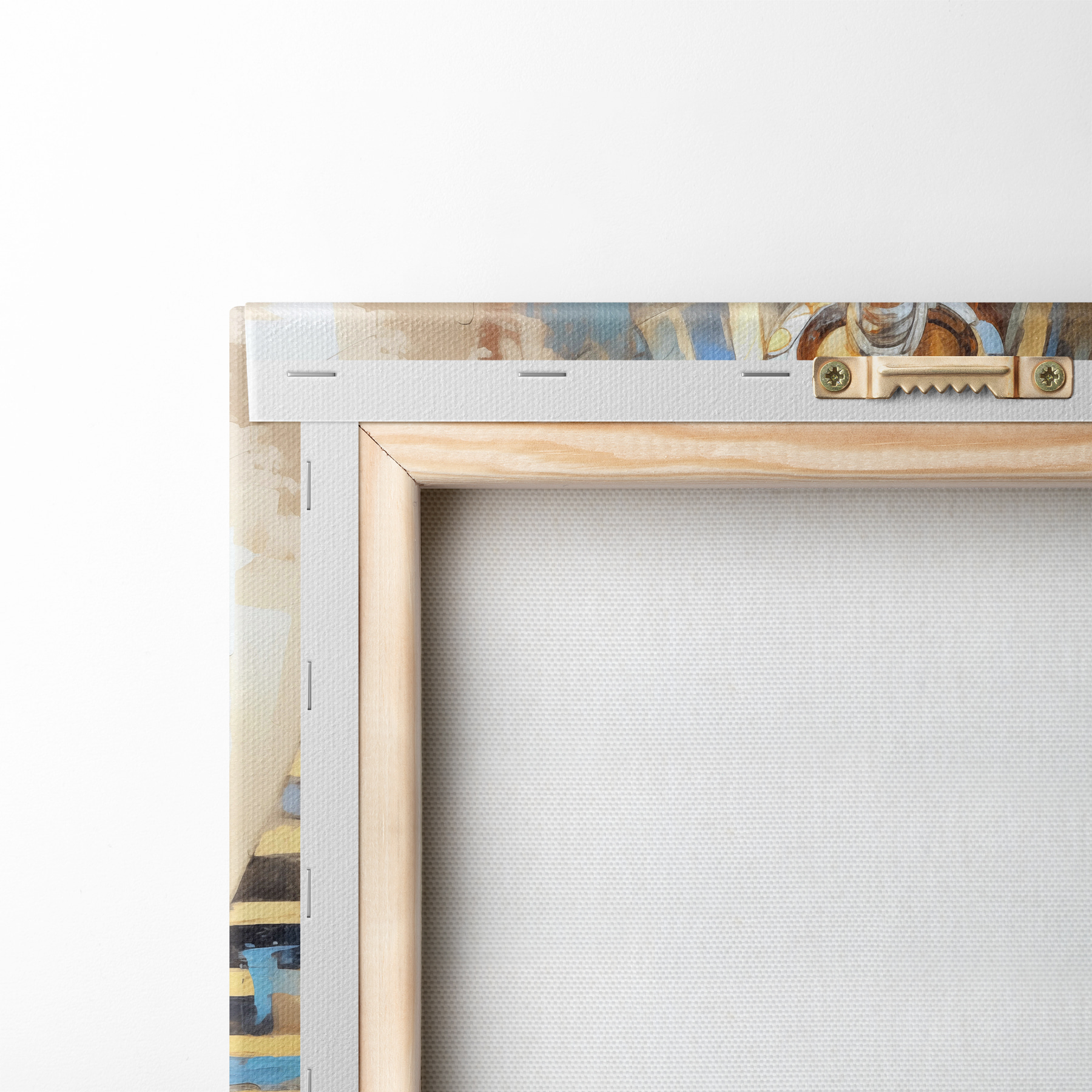 Glezna ir iekārtojama uzreiz pēc tās saņemšanas. Glezna tiks izstiepta uz 2 cm platām koka nestuvēm.