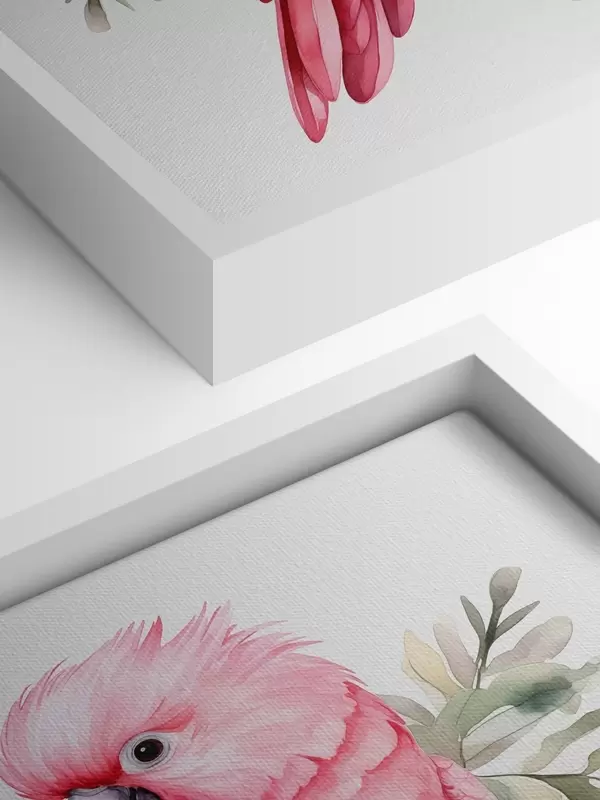 Glezna Rozā kakadū papagailis sēž uz zara, akvarelis Nr s39334