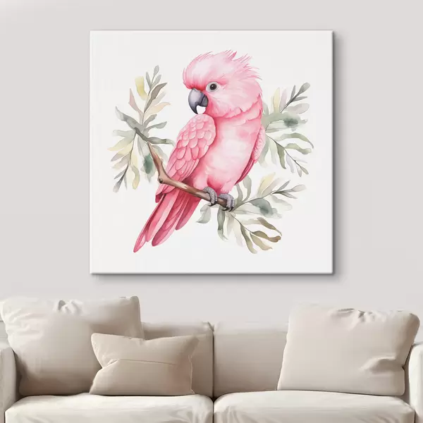 Glezna Rozā kakadū papagailis sēž uz zara, akvarelis Nr s39334