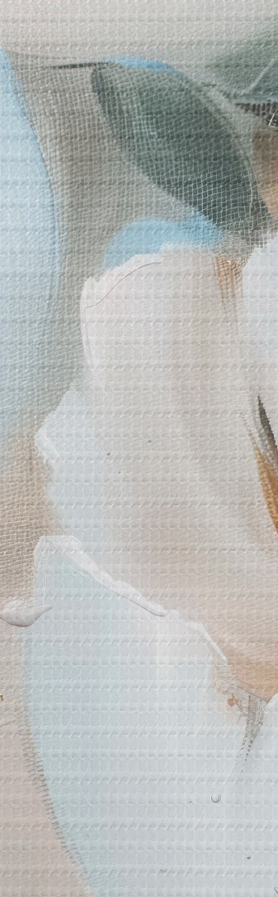 Smalkais diegu pinums uz šī audekla atgādina profesionālu mākslinieku audeklu virsmu.