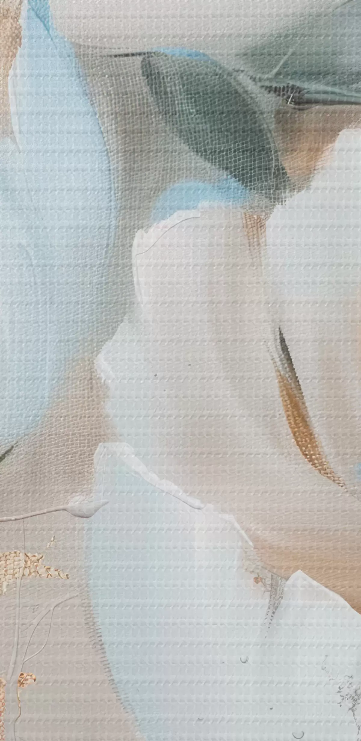 Smalkais diegu pinums uz šī audekla atgādina profesionālu mākslinieku audeklu virsmu.