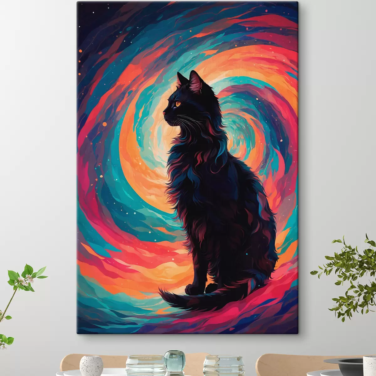 Glezna Melns kaķis uz kosmosa fona Nr s39370