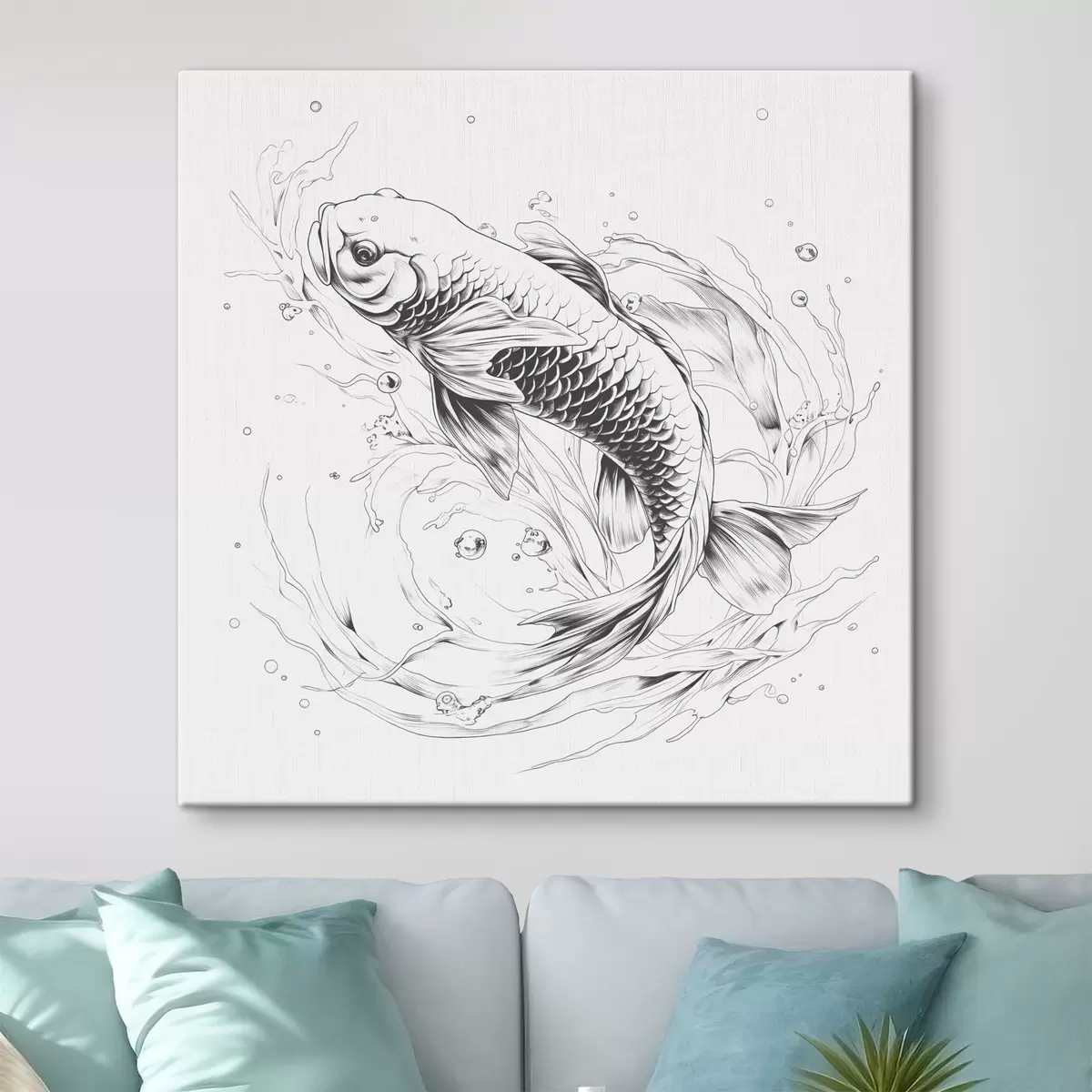Glezna Koi zivju vienkrāsains līniju zīmējums Nr s39433
