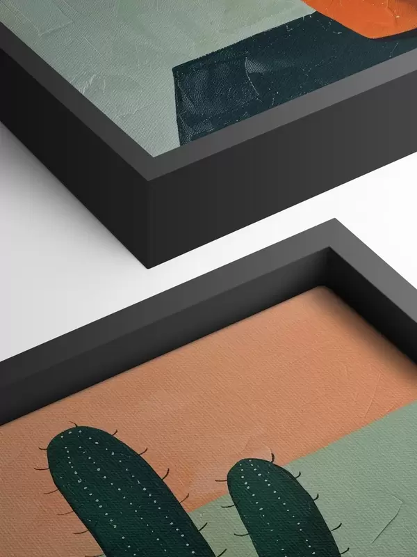 Glezna Minimālisma glezna ar vienu kaktusu ar ziediem drosmīgā krāsu paletē. Nr s39452