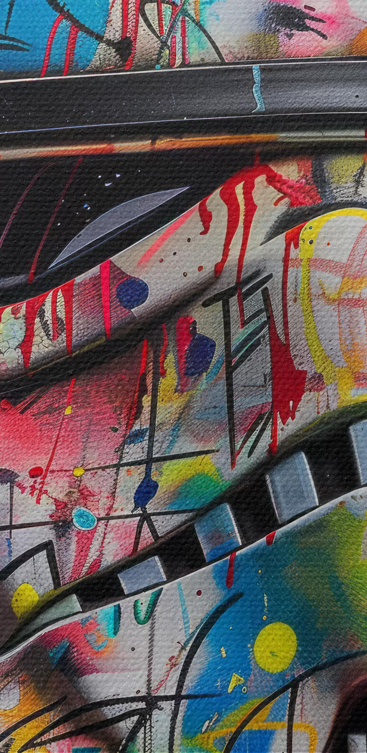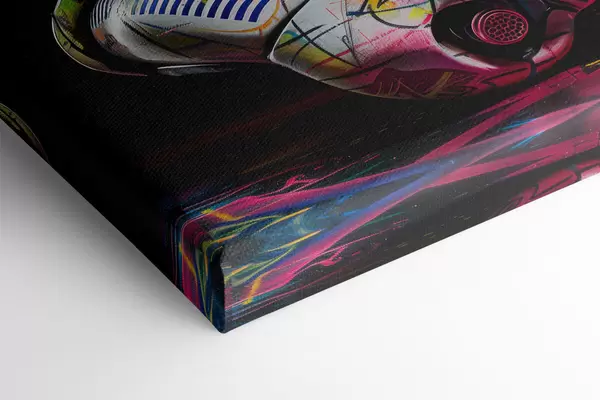 Glezna Zvaigžņu karu uzbrukuma ķivere, kas pārklāta ar košu ielu mākslu un grafiti Nr s39453