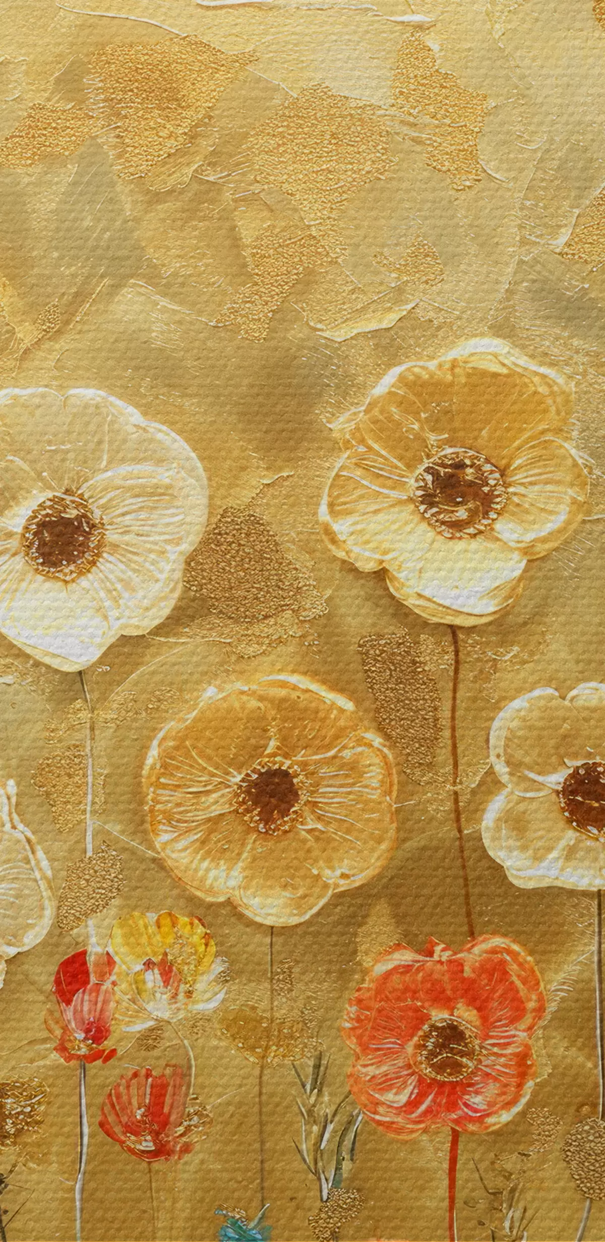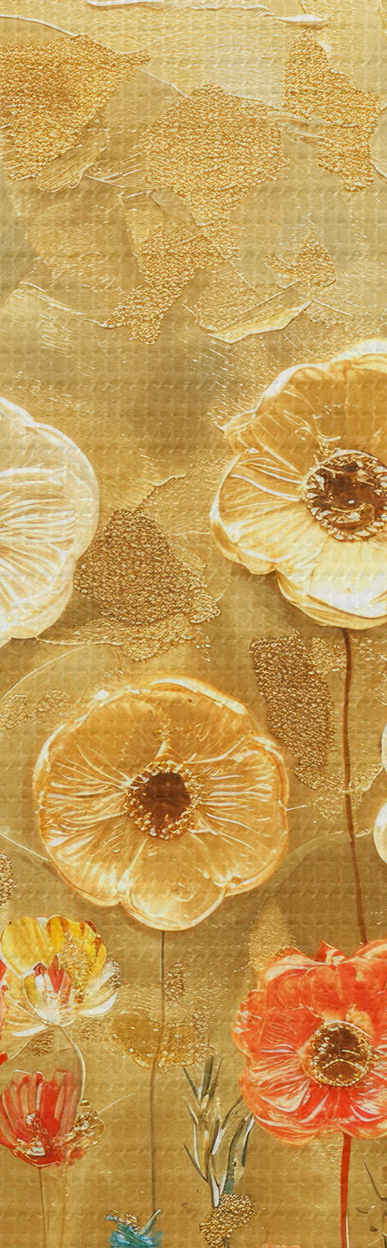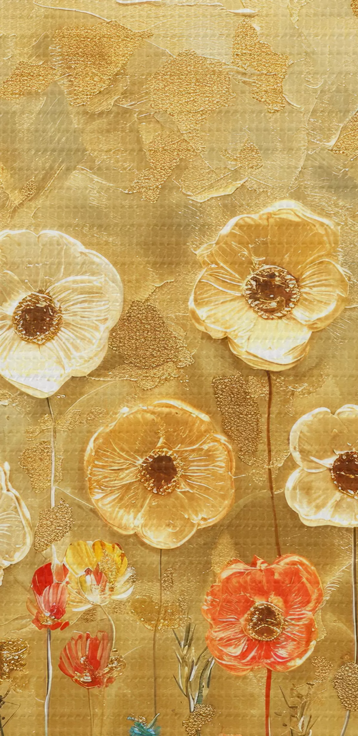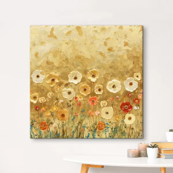Glezna klimta stila pļava: maigi pasteļtoņu ziedi ar kausēta tekstūru Nr s39464