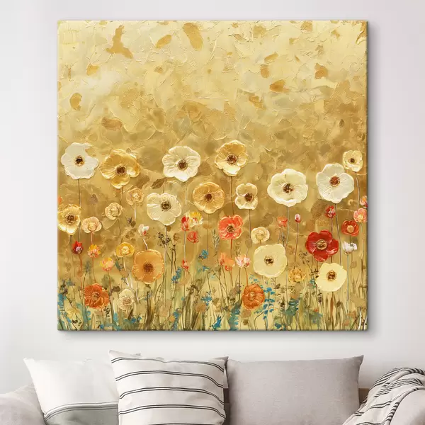 Glezna klimta stila pļava: maigi pasteļtoņu ziedi ar kausēta tekstūru Nr s39464