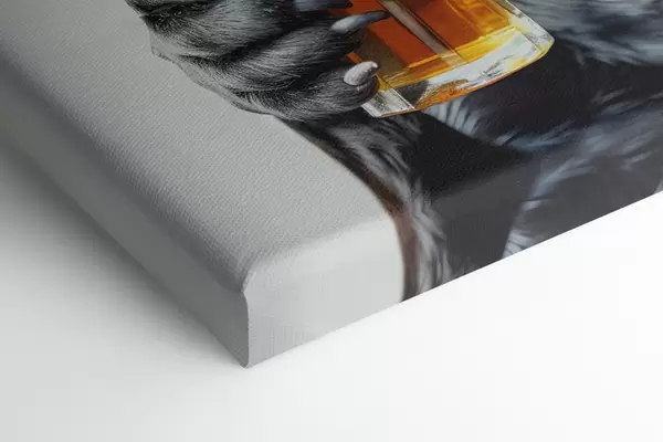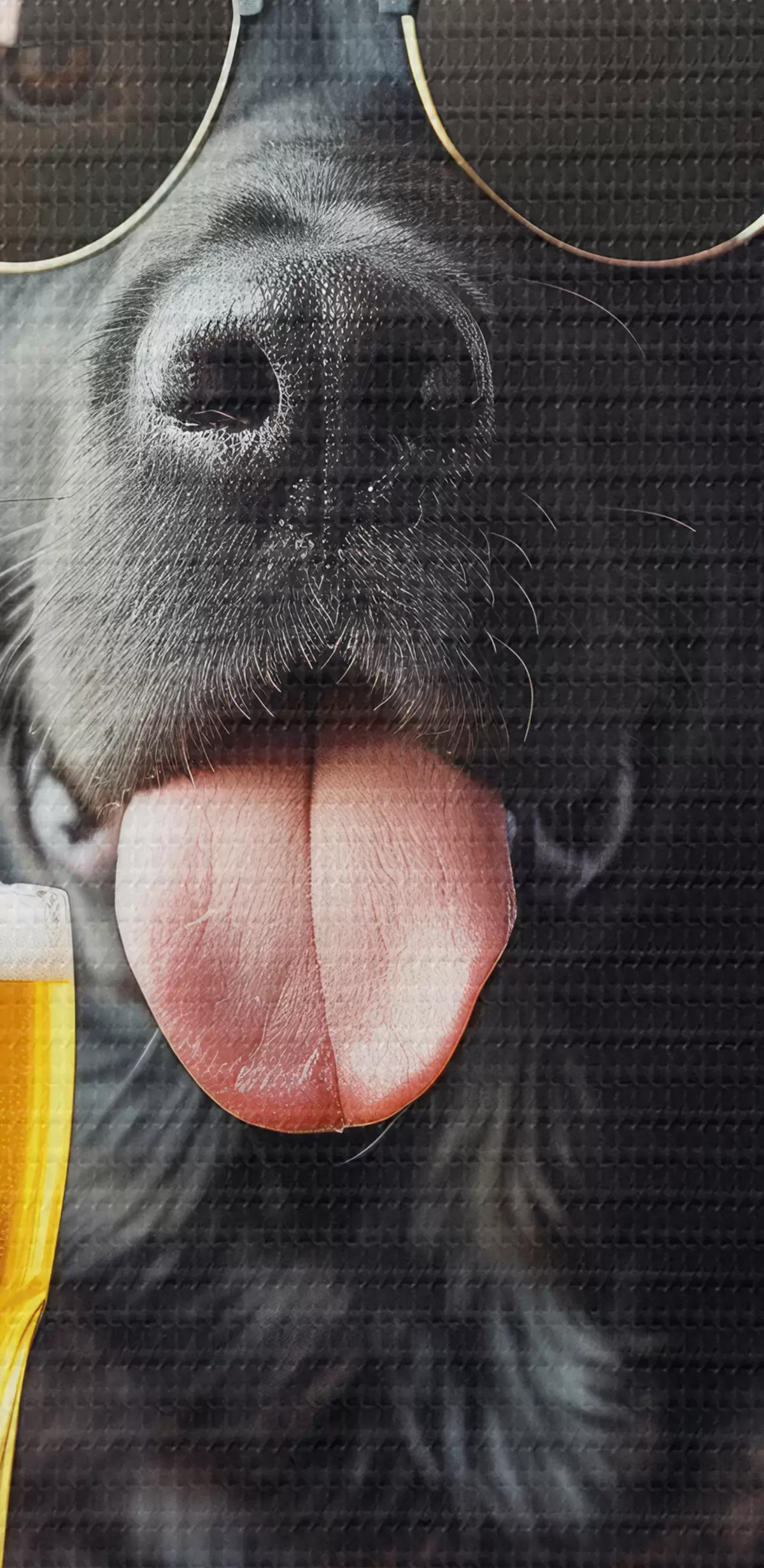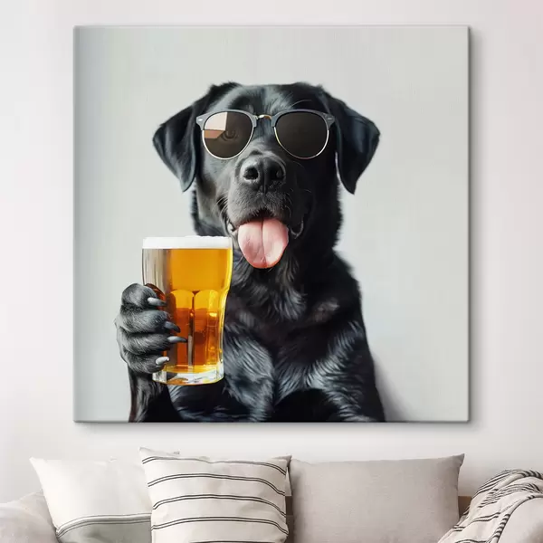 Glezna Melna labradora portrets, kurš valkā saulesbrilles un tur pinti alus, skatās tieši kamerā s39470