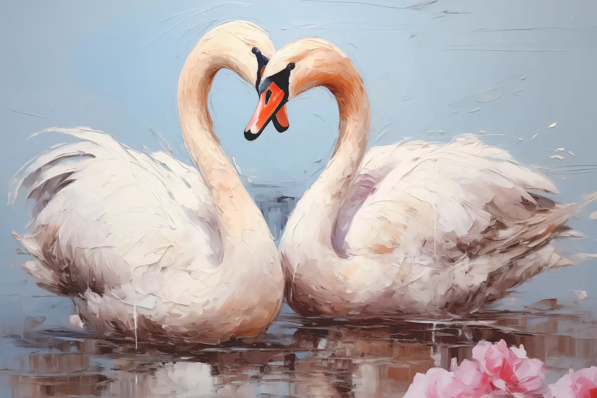 Glezna Balto gulbju pāris uz dīķa, eļļas glezna Nr s39572