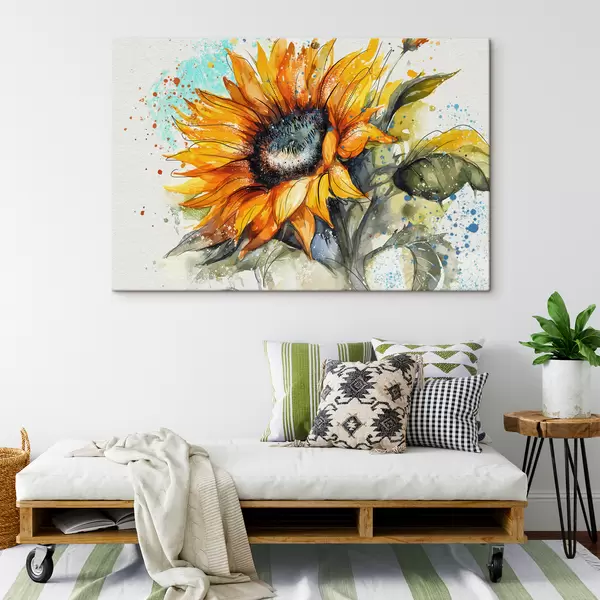 Glezna Akvareļa saulespuķe ar krāsas šļakatām s39583