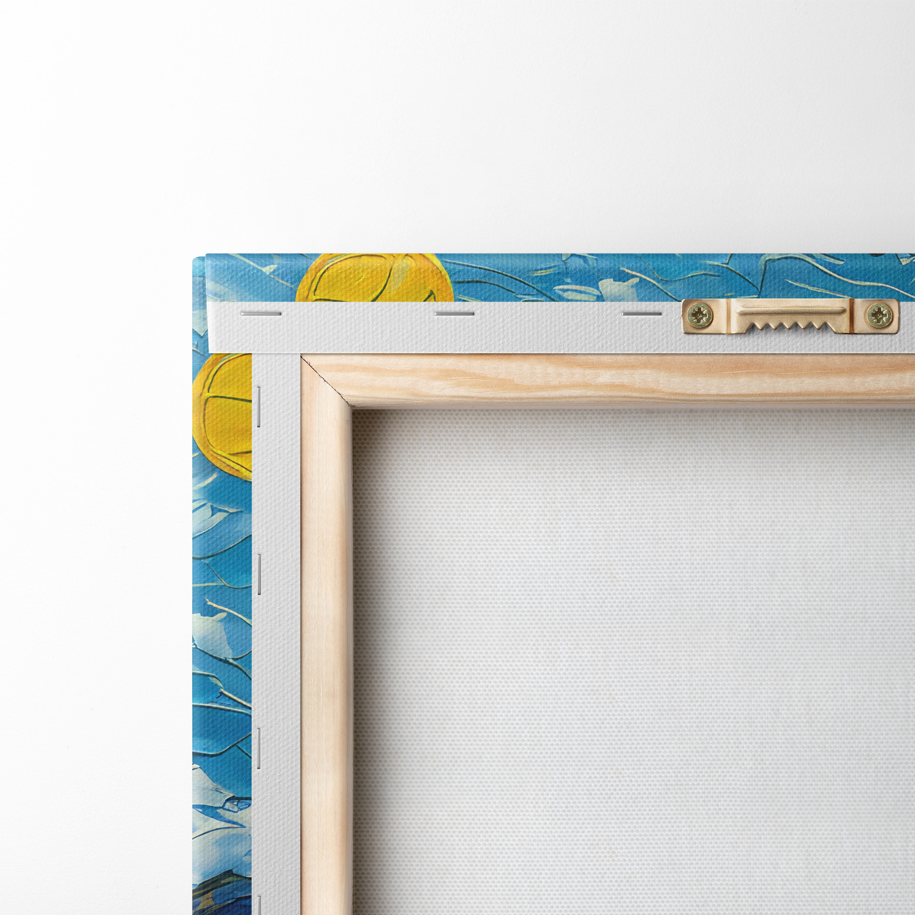 Glezna ir iekārtojama uzreiz pēc tās saņemšanas. Glezna tiks izstiepta uz 2 cm platām koka nestuvēm.