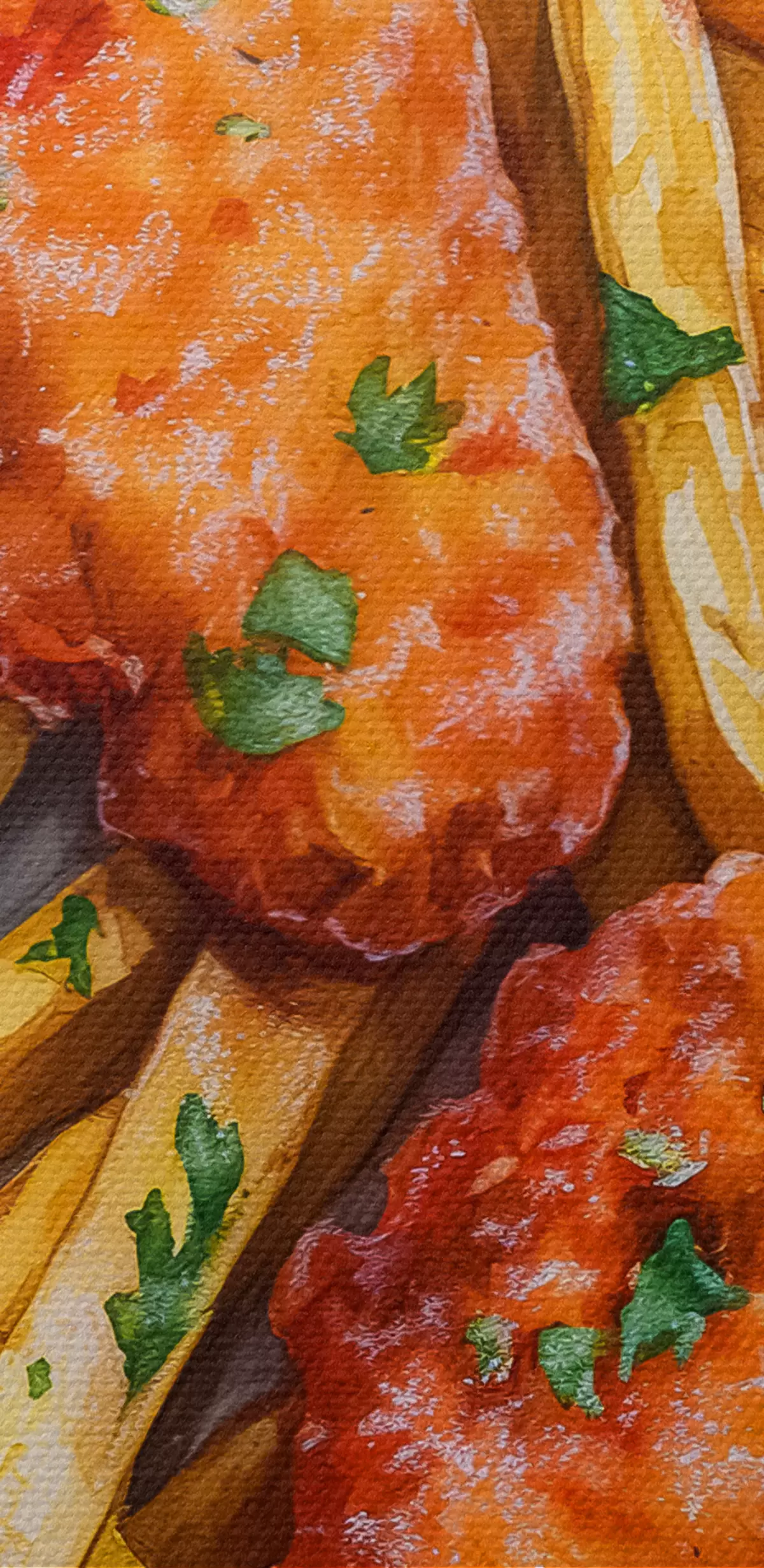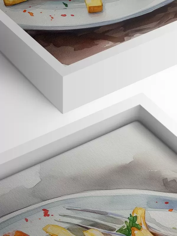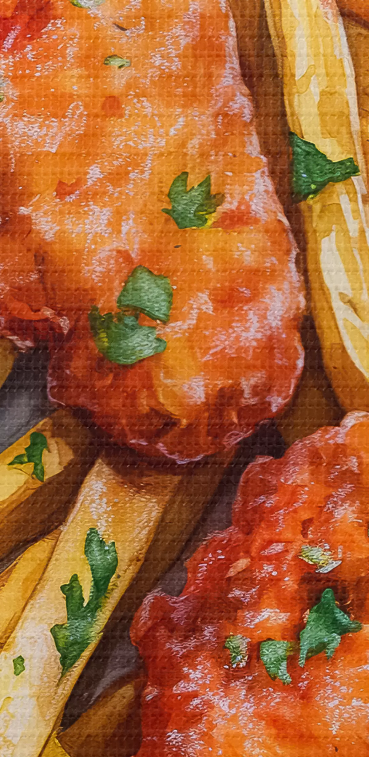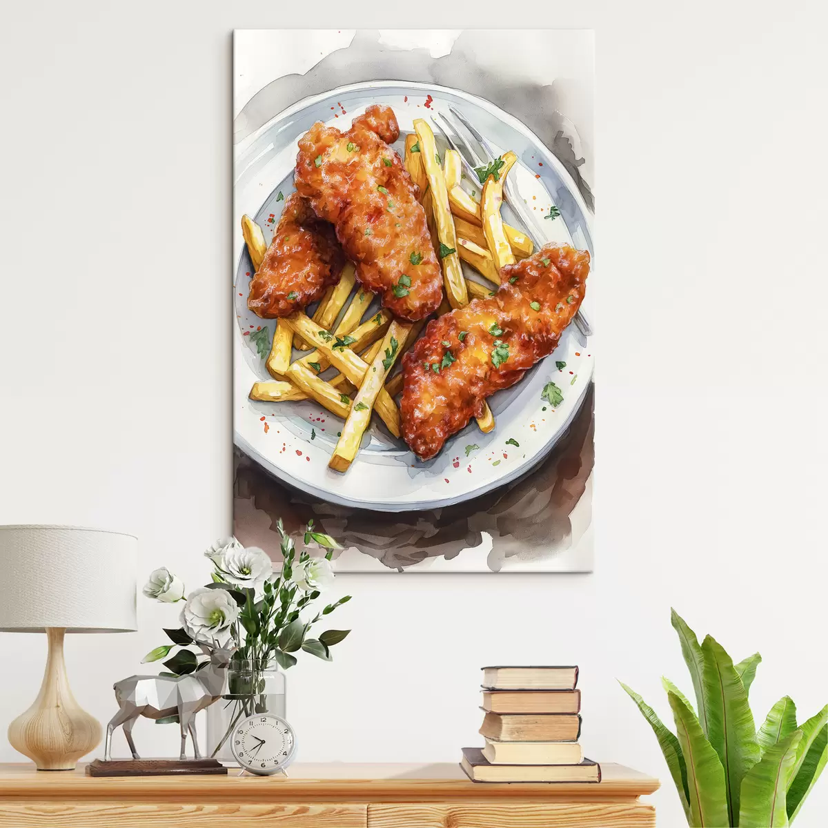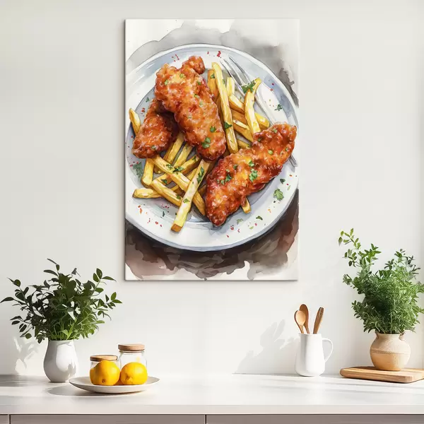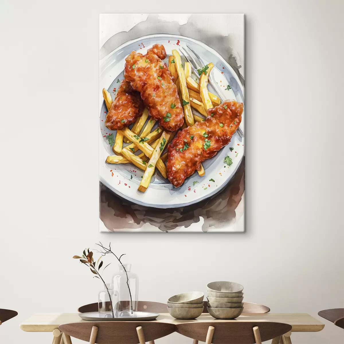 Glezna Akvareļu ēdienu māksla, frī kartupeļi ar ceptu vistu, garšīgi Nr s39708