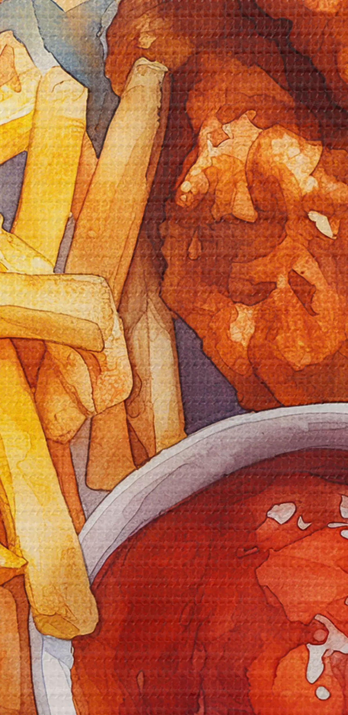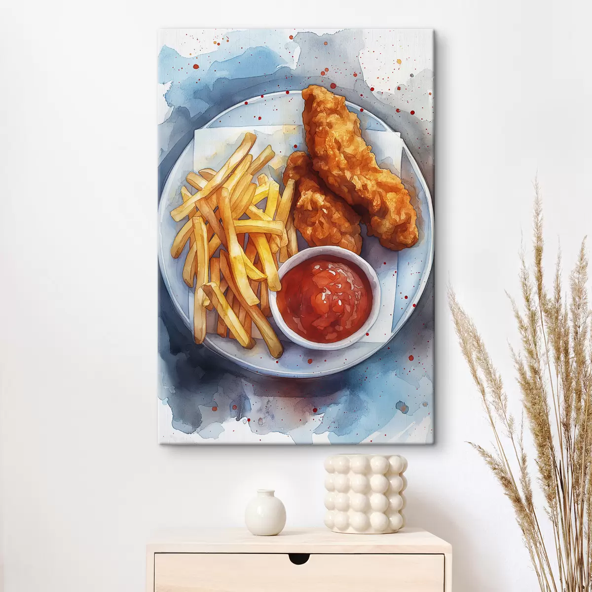 Glezna Akvareļu ielas ēdiens, frī kartupeļi ar ceptu vistu, garšīgi Nr s39709