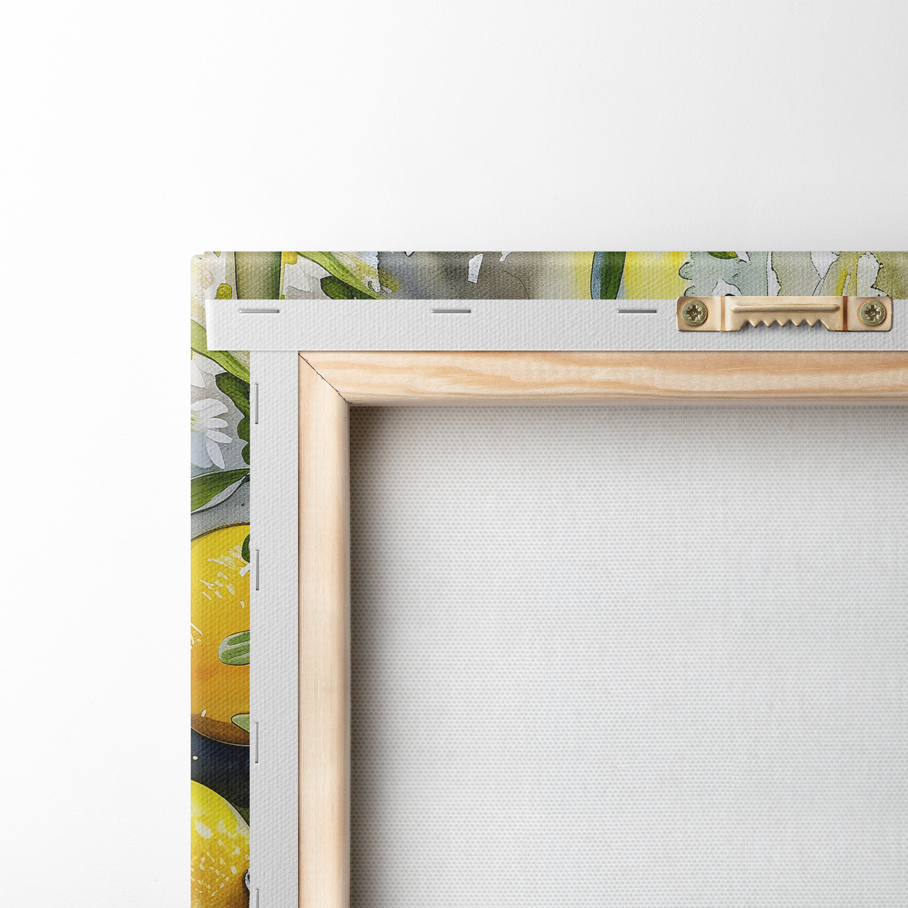 Glezna Elegantas austeres uz šķīvja, citroni un ziedi, vasaras krāsas, vidusjūras s39710