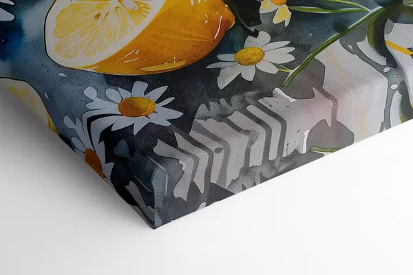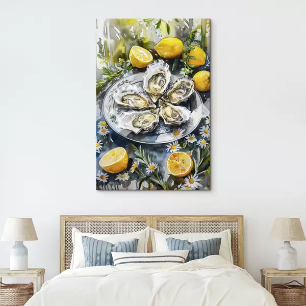 Glezna Elegantas austeres uz šķīvja, citroni un ziedi, vasaras krāsas, vidusjūras s39710