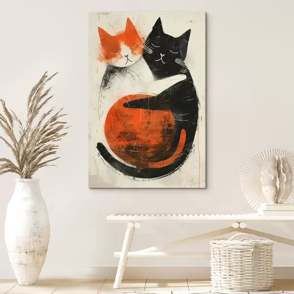 Glezna Minimālisma tintes ilustrācija ar diviem jaukiem kaķiem s39725
