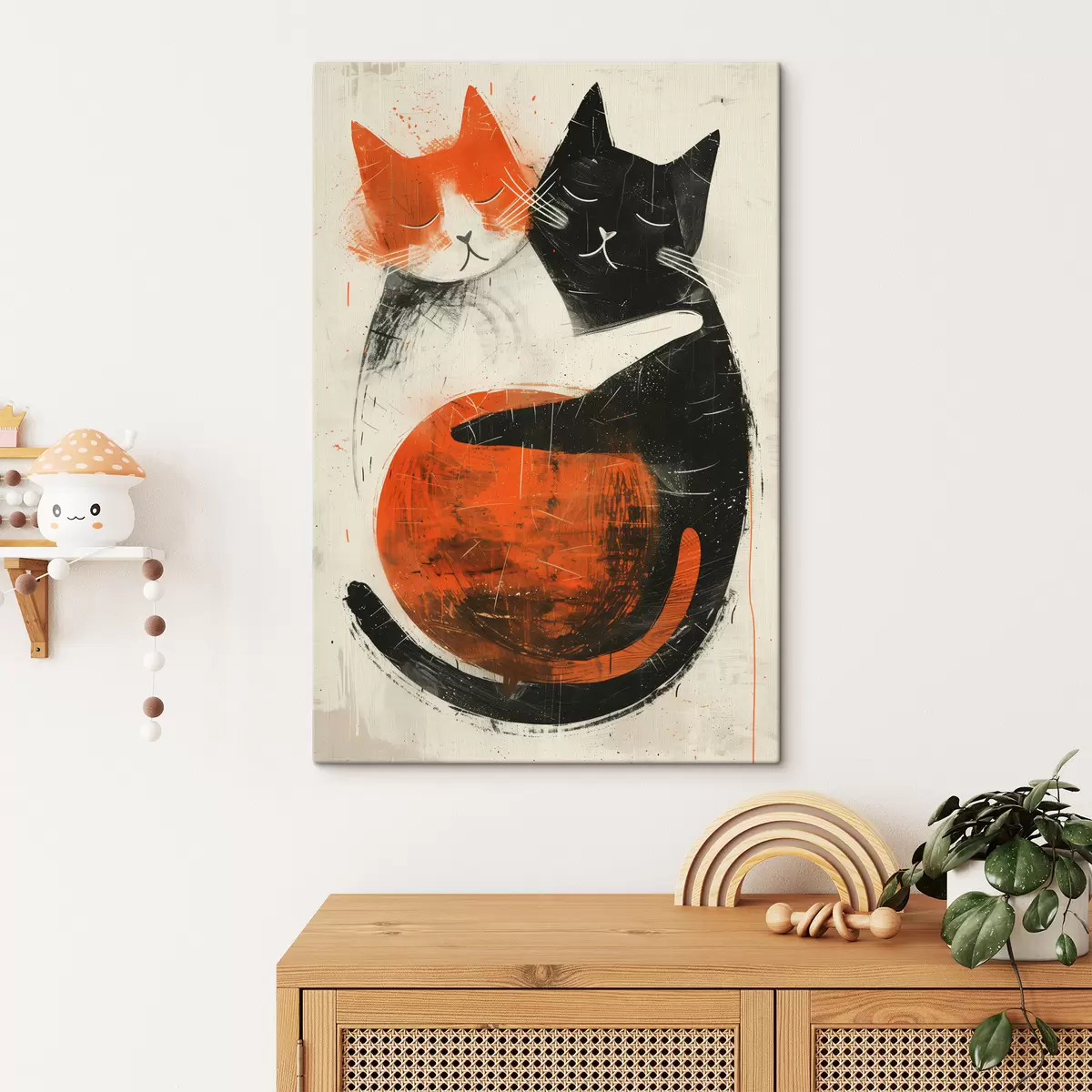 Glezna Minimālisma tintes ilustrācija ar diviem jaukiem kaķiem s39725