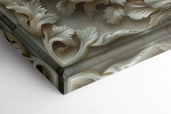Glezna 3D balti bareljefa ziedi uz marmora fona ar rāmi s39739