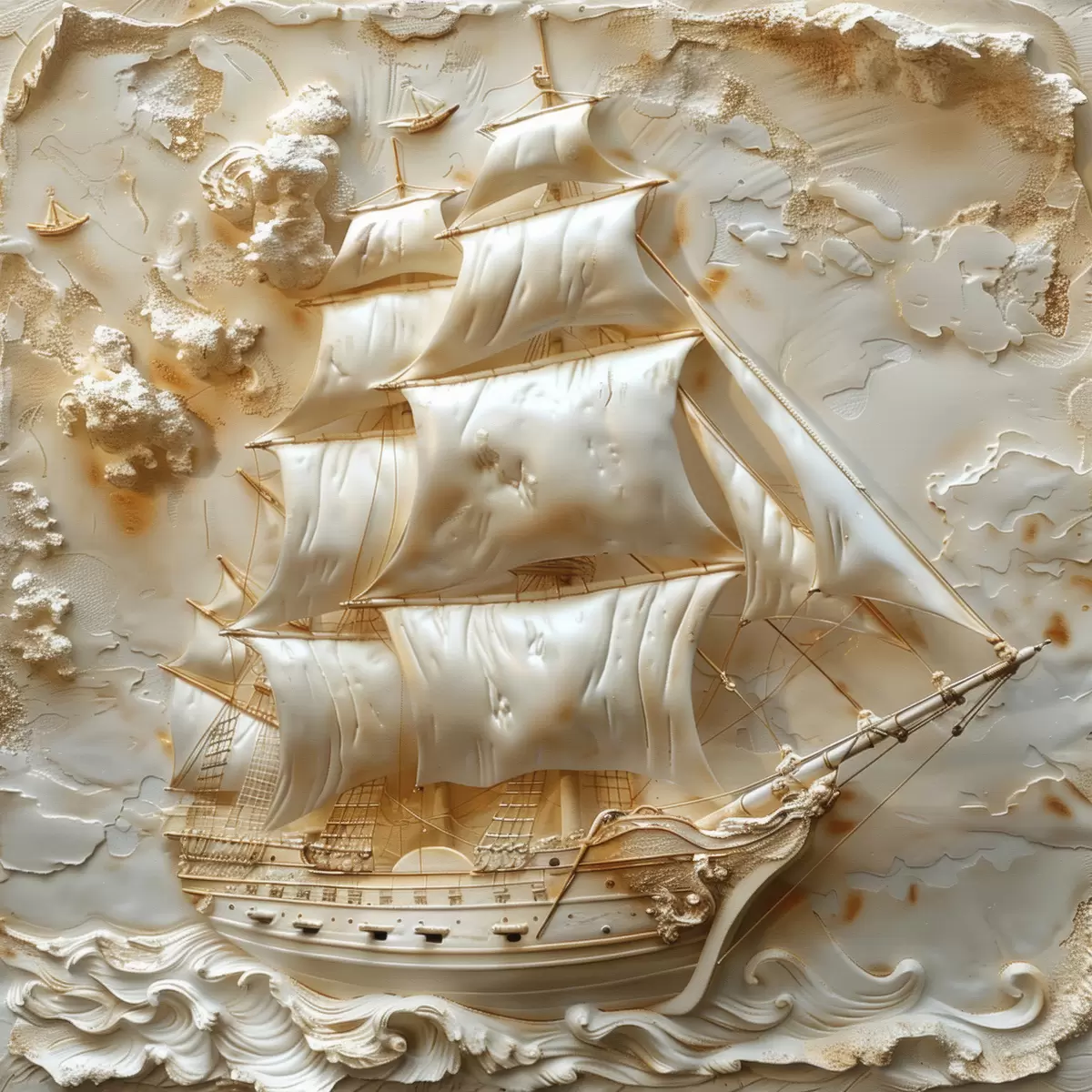 Glezna Bareljefs uz kuģa, kas kuģo pa jūru Nr s39757