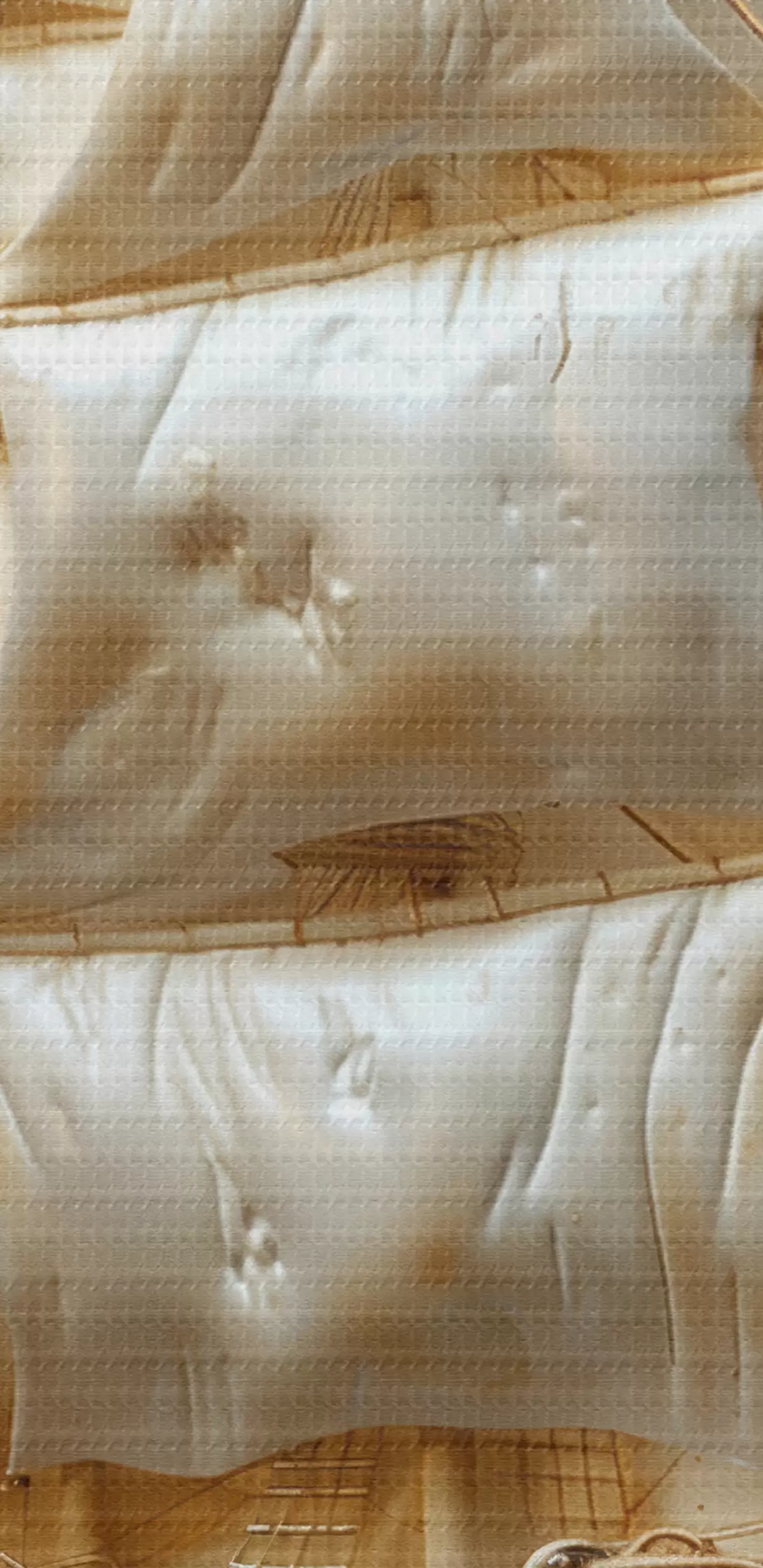 Lai izstieptu audeklu uz nestuvēm, nebojājot attēlu, mēs izmantojam spoguļattēlu.