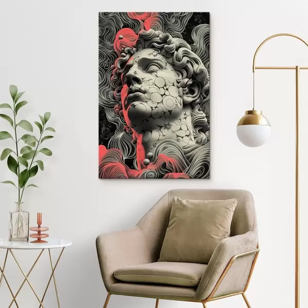 Glezna Melnbalta lineāra grieķu dieva Apollona galvas ilustrācija popmākslas stilā Nr s39763
