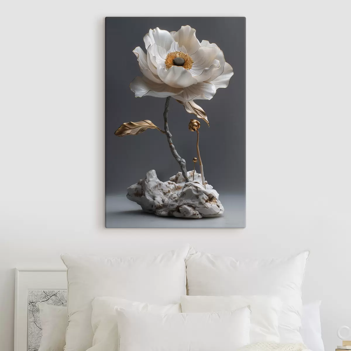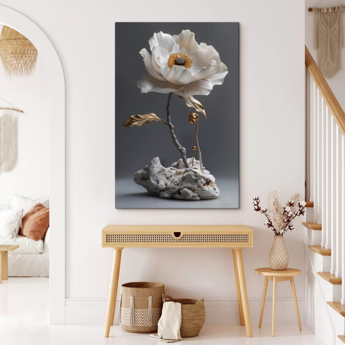 Glezna Graciozs balts lotoss, kas zied no akmens Nr s39765