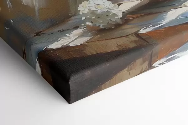 Glezna ir iekārtojama uzreiz pēc tās saņemšanas. Glezna tiks izstiepta uz 2 cm platām koka nestuvēm.