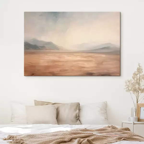 Glezna Tuksnesis ar kalniem fonā mierīga ainava Nr s39835