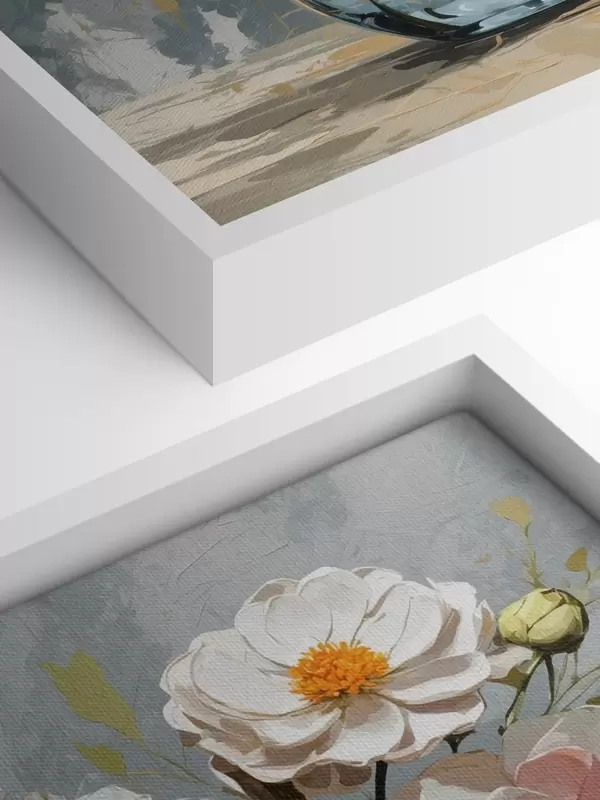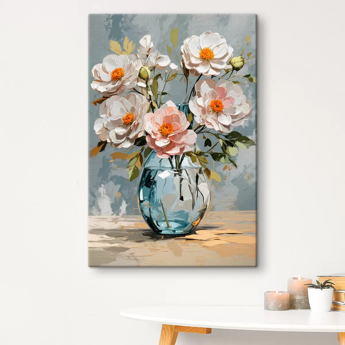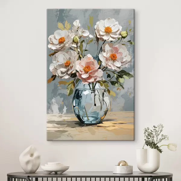 Glezna Balti ziedi caurspīdīgā vāzē s39850