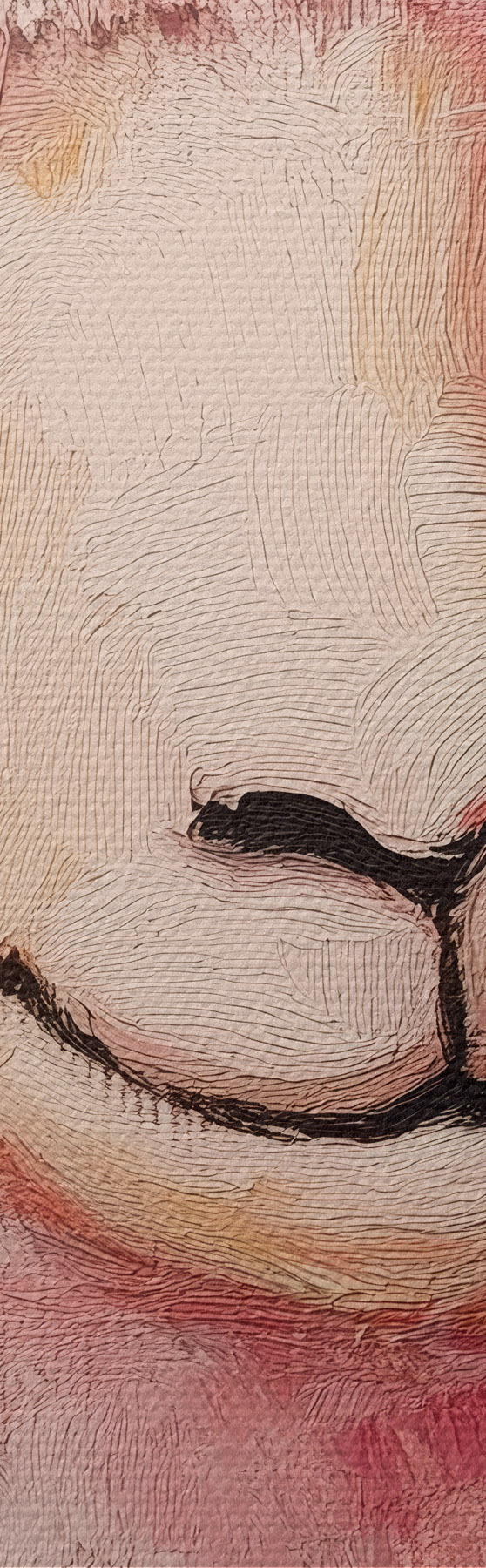 Smalkais diegu pinums uz šī audekla atgādina profesionālu mākslinieku audeklu virsmu.