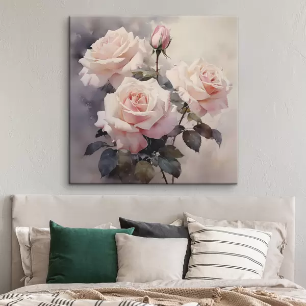Glezna Baltas rozā rozes uz tumša fona akvarelis Nr s39927
