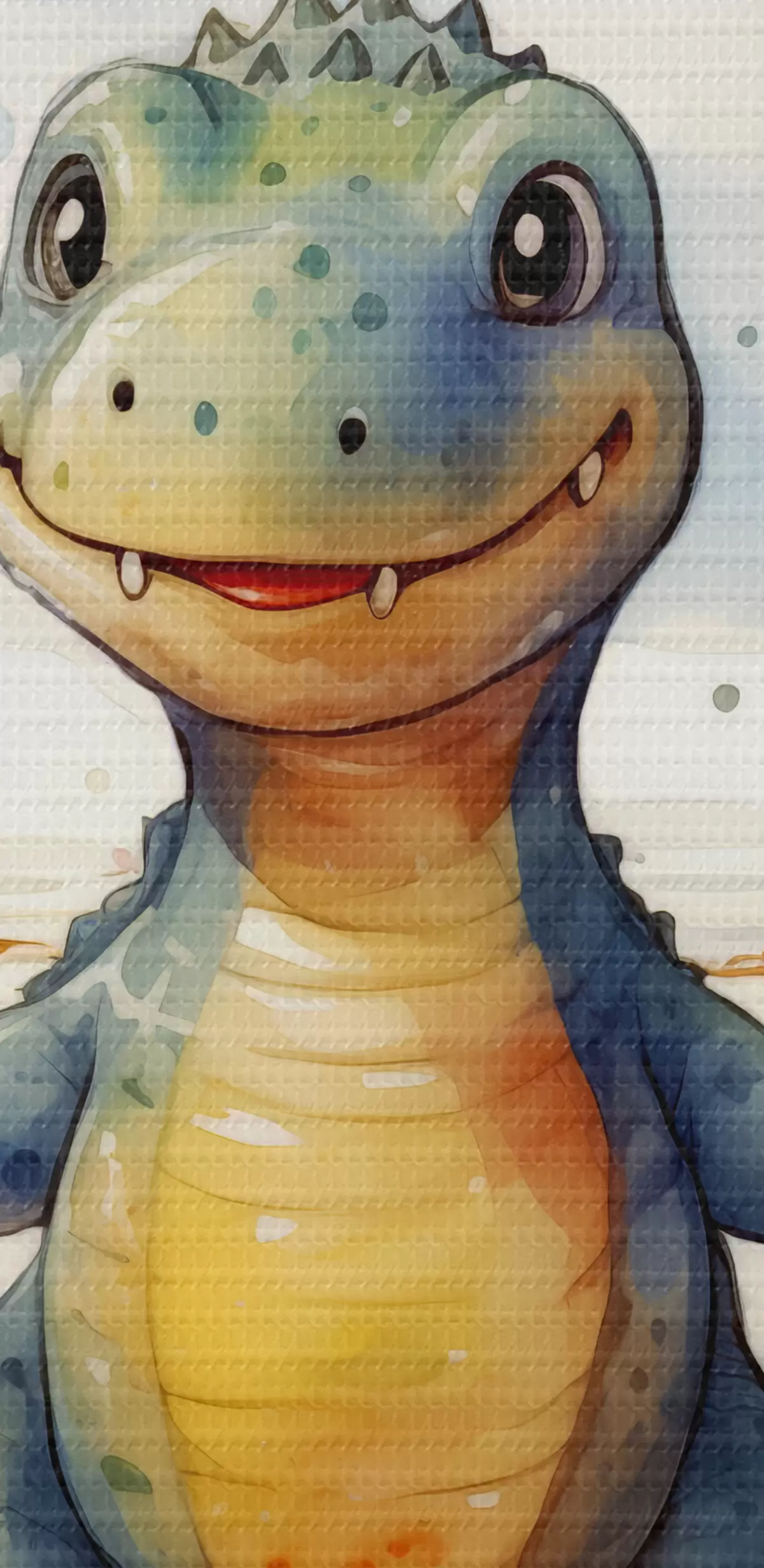 Glezna Dinozaurs upē uz kalnu un papardes akvareļa fona Nr s39930
