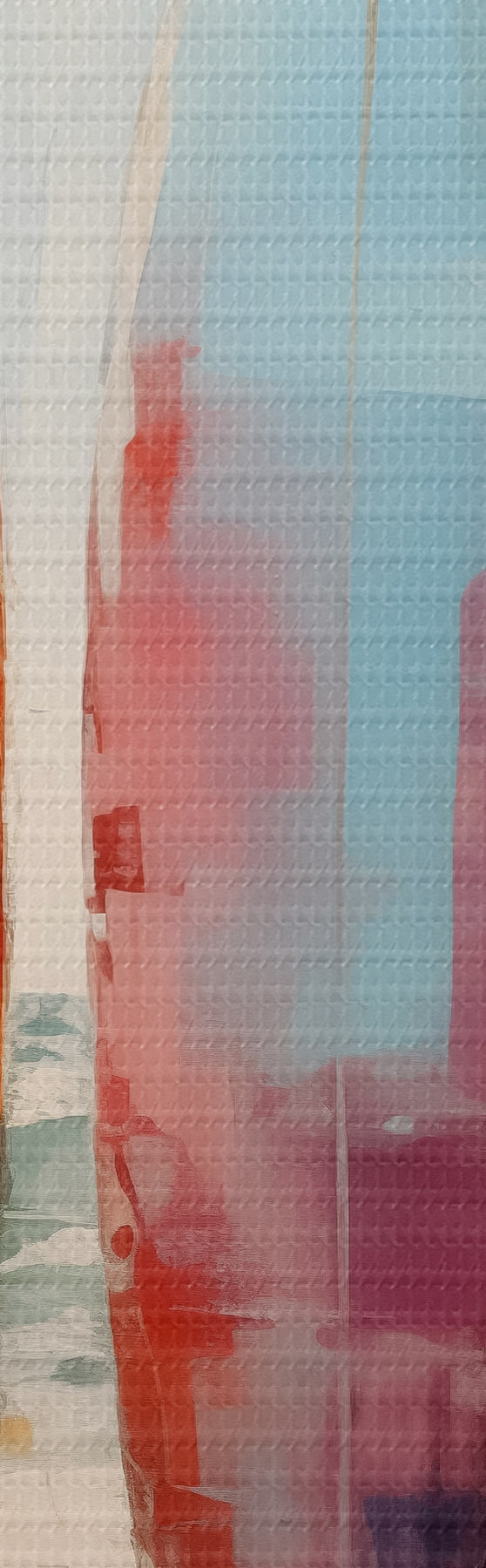 Smalkais diegu pinums uz šī audekla atgādina profesionālu mākslinieku audeklu virsmu.