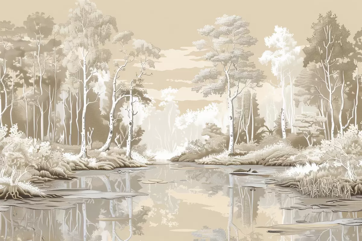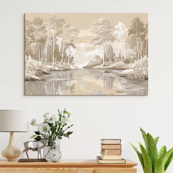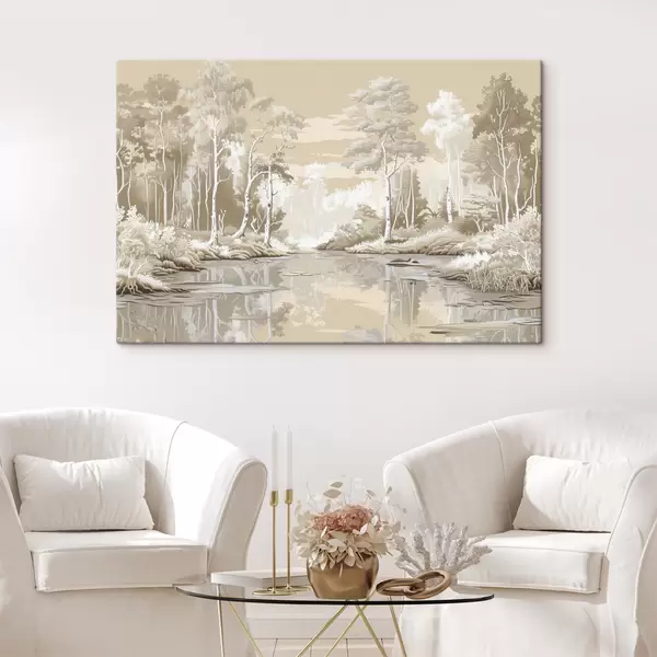 Glezna Skaista meža ainava, maigas pasteļkrāsas, bēša un balta s39978