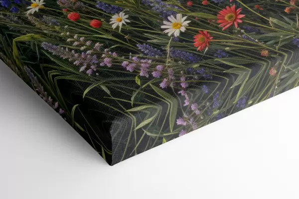 Glezna Lekna lauku ainava ar dinamisku savvaļas ziedu pļavu, kas piepildīta ar krāsainiem ziediem zem mākoņainām debesīm Nr s40018